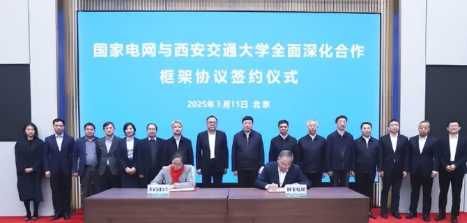 2025年3月11日,西安交通大学与国家电网有限公司签署战略合作协议。双方以新一轮协议签署为契机,在过去良好合作基础上进一步深化务实合作,聚焦新型电力系统关键问题开展重点协同攻关,面向重点领域开展基础研究,推进创新链产业链资金链人才链深度融合,创新人才培养机制,大力培养高水平科技人才,为保障国家能源安全、服务能源强国建设贡献力量。