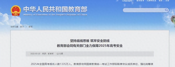 据教育部网站消息,2025年全国高考报名人数1335万人,比去年减少了7万人,系近10年首次下降。