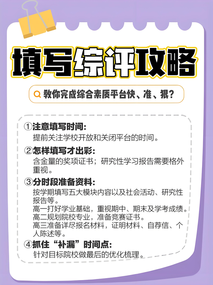 ### 4. 提前规划时间,提高文书质量 综合评价申请材料的准备通常需要较长时间,从撰写个人陈述到整理活动经历,都需要细致入微的考虑。建议制定时间表,将每个环节拆分并安排完成时间,避免最后一刻手忙脚乱。 结尾互动:你是否在申请过程中遇到过困惑或挑战?分享你的经历吧,我们会尽力为你提供更多建议和解答! 做好以上几点,你的综合评价申请将更具吸引力,成功进入梦校的可能性也会大大增加。祝你一切顺利!