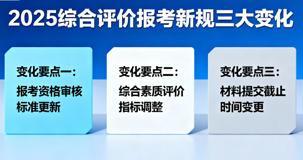 2025年的综合评价招生新规会如何影响你的未来?这是每一位即将参加考试的学生和家长都迫切关注的问题。今天我们就为大家详细揭示2025年综合评价报考条件的三大变化,这些变化可能会让你的准备策略发生重大调整!一定要认真看完,掌握核心信息,为明年备考做好充分准备。